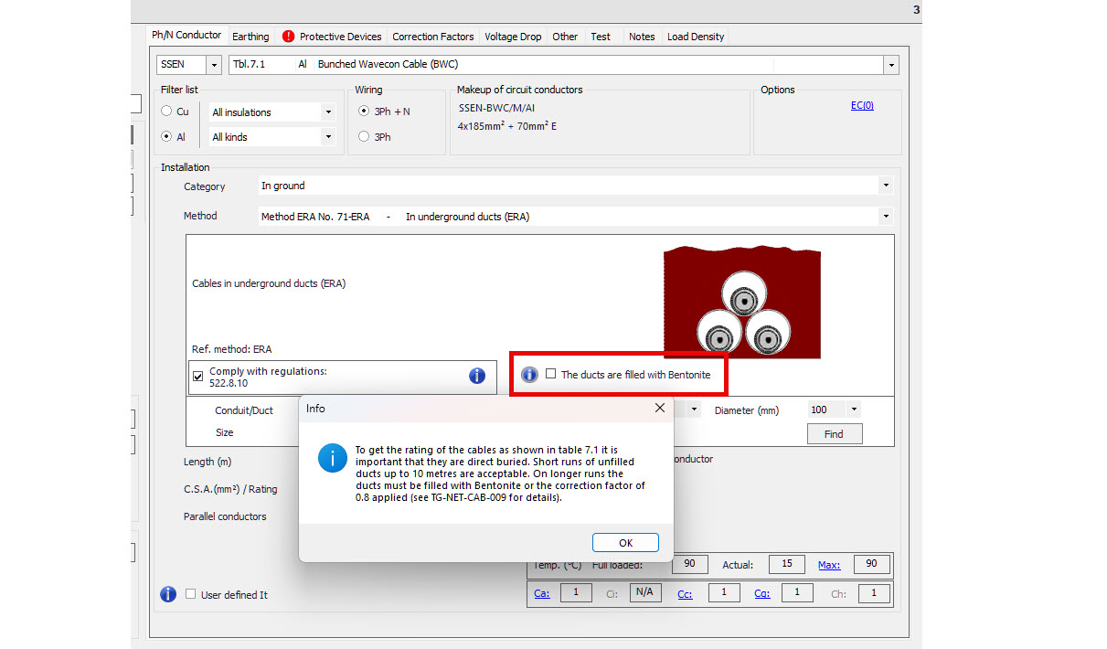 12.12: Derating considerations for the SSEN Cable when in ducts in ground and the length > 10m (TG-NET-CAB-009)