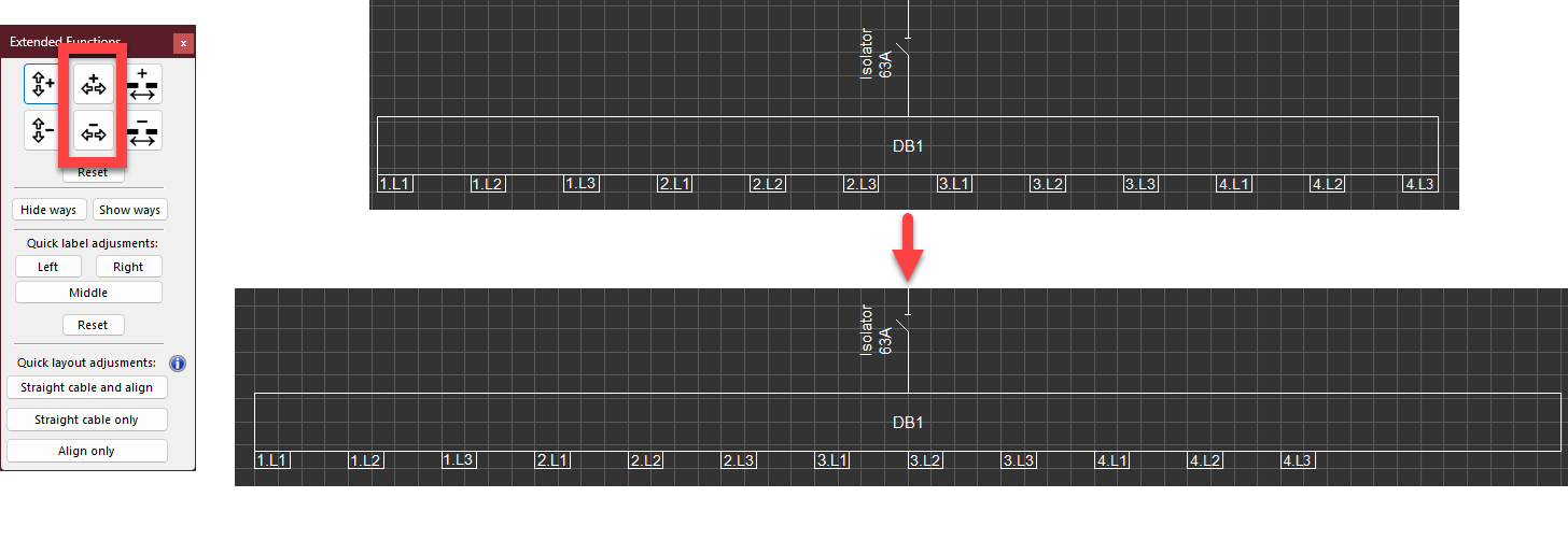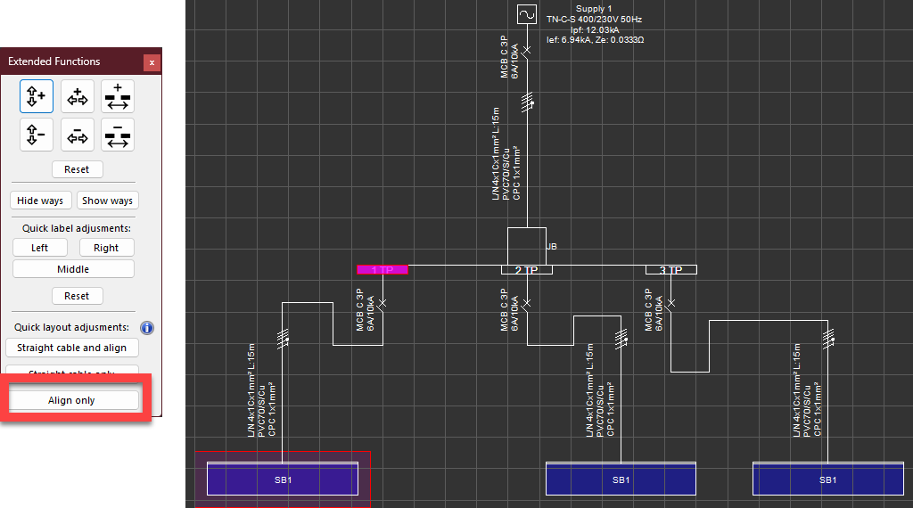 - Straight cable and align option will combine two functions above and attempt to both align the selected boards and straighten their cables. Selection is the same as above.