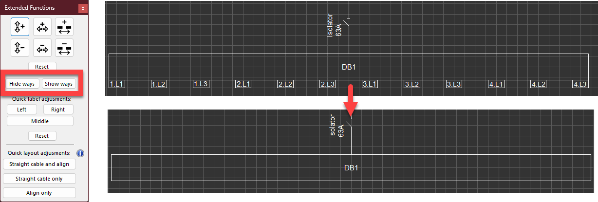 - Hide ways/Show ways: These buttons will hide or show the way boxes of a board.