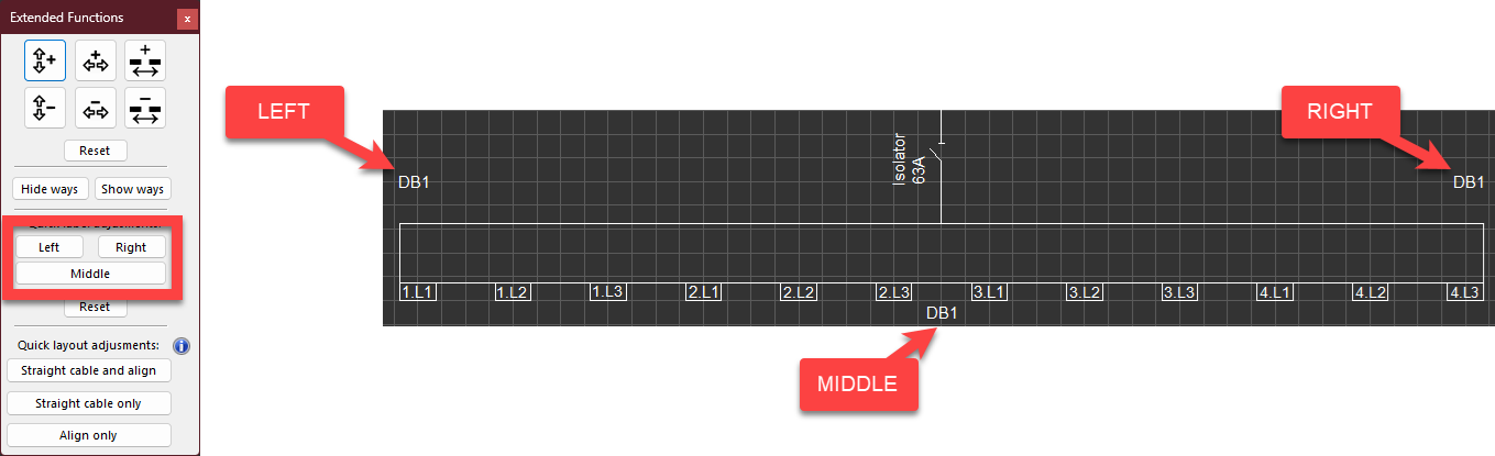 These buttons will move the label of a board as shown below.